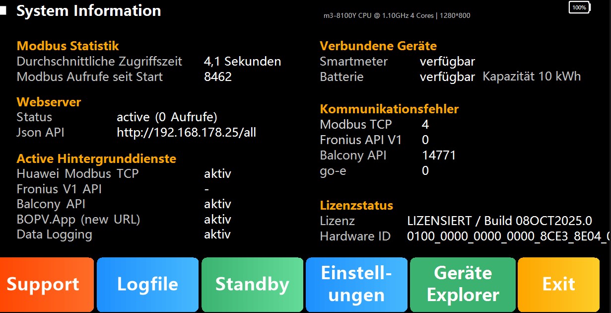 In den Logfiles finde ich keine Info oder Fehler wegen des Balcony API´s.